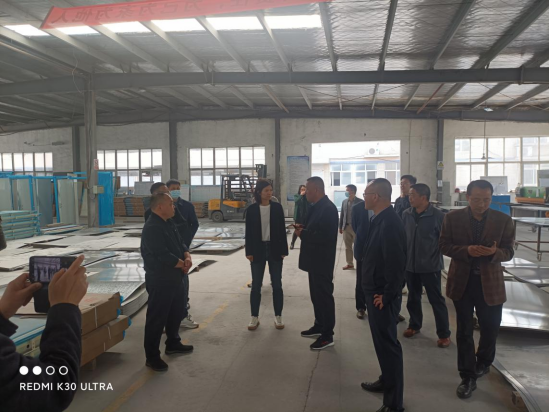 2022年4月13日上午,區政府王露區長帶隊到伙牌與伙牌鎮政府吳天勇書記、開發區喬明龍主任、區自然資源和規劃局參觀園區樂仕福膏藥廠、安邦盛世門業。